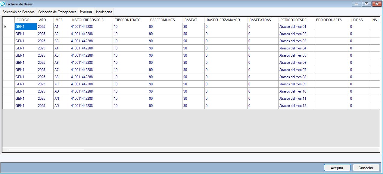 Con estos datos confeccionamos las nĂ³minas de atrasos y posteriormente el Fichero de Bases de CotizaciĂ³n para el envĂo al Sistema de LiquidaciĂ³n Directa (SILTRA)