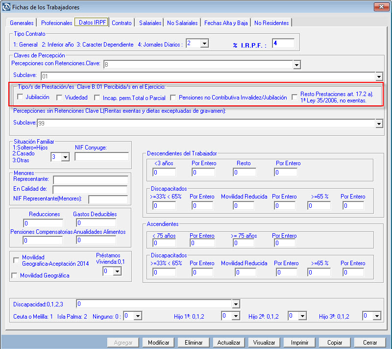 Nuevo campo “Tipo/s de prestación/es de la clave B.01 percibida/s en el ejercicio”.